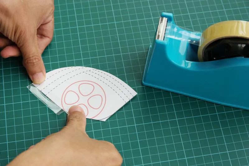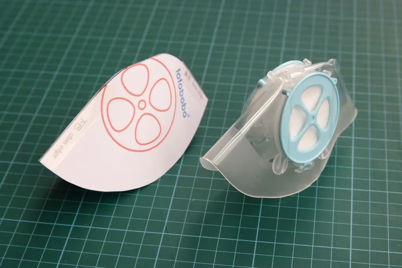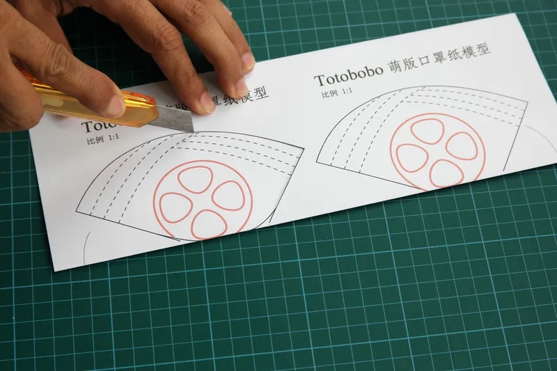 Download the file and print on A4 paper. Use the scale on top of the page to double check the scale is correct.Print the simulator file on A4 paper, fold along the “fold line”.You can make two Petite simulators from the print. Follow the outline and cut out the mask.Use scotch tape to join the top (nose edge) and the bottom (chin edge).cut away the small corners.you have now a full size paper simulator of the Petite mask. Open up the paper mask and try it on your children’s face!If the paper mask is too big, cut away the first line near to the chin-edge. Put it on the user’s face again to test the size.Continue to cut the mask smaller, and test the size. Line by line until you get the mask size fitting your children.Here showing the situation after the second line is cut away. Suppose this is the size fitting your children.Now insert the paper simulator into the middle of the mask. Try to align the red circle with the filter cover.Use the paper dummy as a guide, cut the mask with a pair of scissors. (The simple scissor shown in the photo is very good for cutting Totobobo mask)The final result: a new Petite mask matching the size of your children. You may still need to reshape the mask to fine-tune the seal.